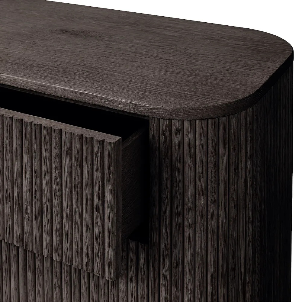 Wood & Texture: Made of premium oak with vertical ridges . Light natural tone + smooth - yet - tactile finish (via fine sanding + matte coating) enhances wood’s organic charm.